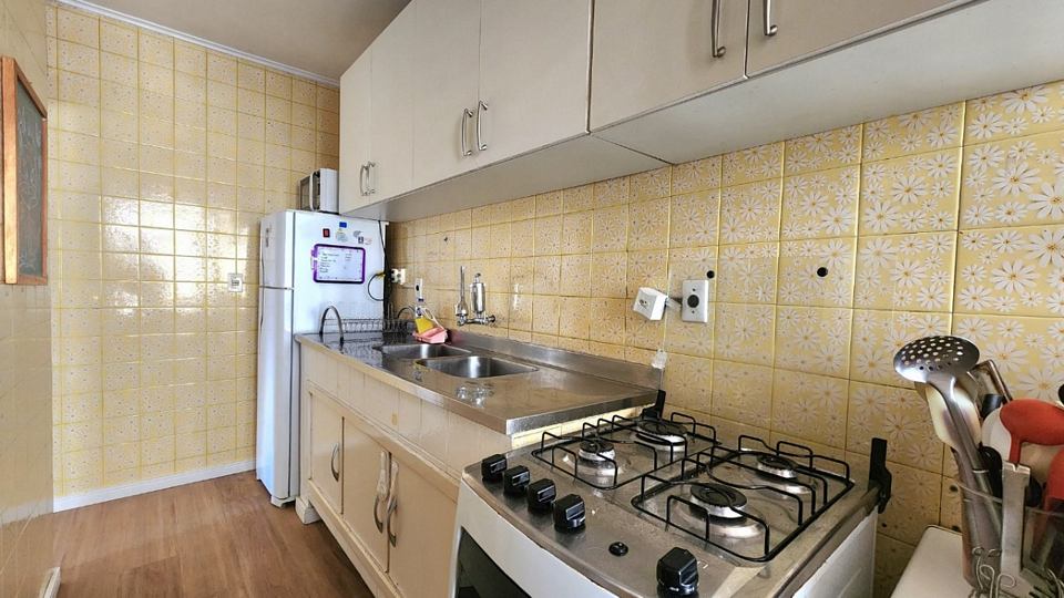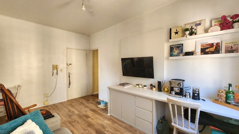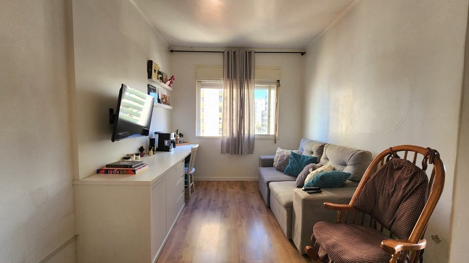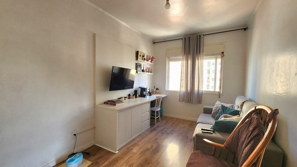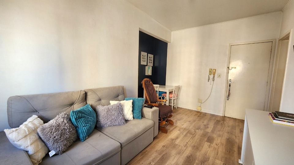 Registre-se abaixo para garantir este benefícioApartamento em andar alto de frente todo reformado com 2 dormitórios, um com sacada, living amplo com piso em laminado de tabuão nova, dependência de empregada, banheiro social e wc auxiliar, isso em edifício com salão de festas com churrasqueira, elevador e portaria 24 hs. Neste valor fica o sofá, a mesa de jantar e o móvel da tv.
