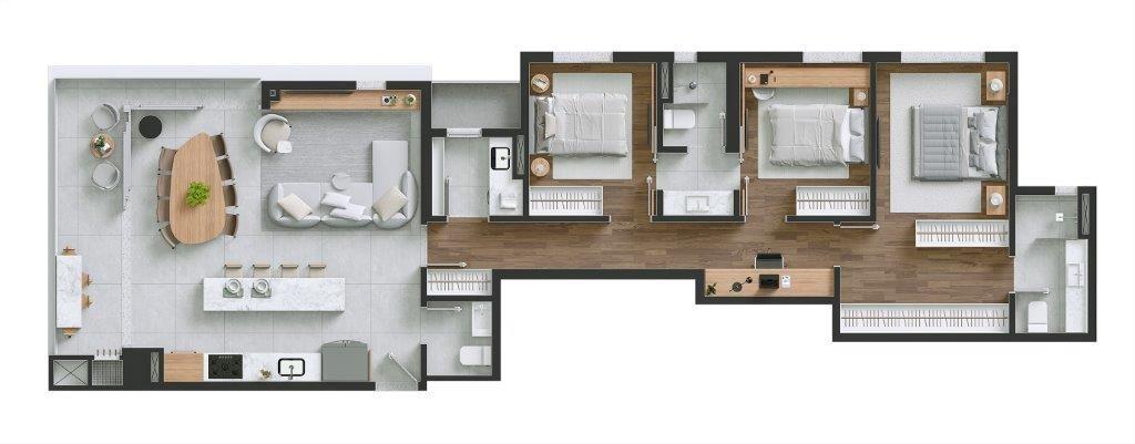 Registre-se abaixo para garantir este benefícioKÓRA. Apartamento com 115,50 m2 privativos, 3 dormitórios sendo 1 suíte e 2 demi-suíte, lavabo, amplo living para 2 ambientes integrado a sacada com churrasqueira e a cozinha americana. Área de serviço separada. Em construção no Portão, na divisa com Água Verde, ao lado do Macdonalds, Região com excelente infra estrutura de transporte, comércio e lazer. Escolas e mercados no entorno do empreendimento. Excelente padrão de acabamento, esquadrias de alto desempenho. Edifício com estrutura de lazer mobiliada e decorada, Portaria com hall decorado, bicicletário, biblioteca, honest market, refugio da araucária, espaço pet, brinquedoteca, quadra poliesportiva, salão de festas integrado a terraço gourmet, piscina, academia, churrasqueira, pub, espaço gourmet e espaço parrilla. opção de unidades com depósito privativo na garagem. Condições flexíveis com sinal, mensais, balões e saldo de chaves (Dezembro 2027) que poderá ser financiado via banco. Venha conhecer TDI 3387-7713 e 98740-7858.