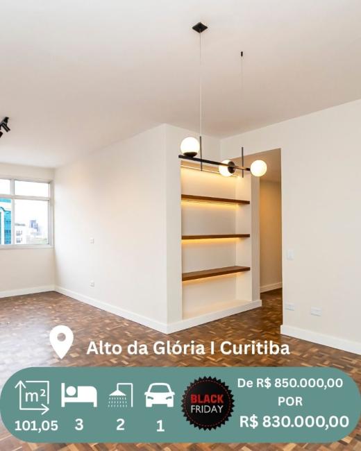 Registre-se abaixo para garantir este benefícioExcelente apartamento Alto Padrão Reformado com 3 Quartos (1 Suíte) com 101m² privativos e vaga de garagem coberta no Alto da Glória. Um apartamento totalmente reformado e planejado por arquiteta, pensado em cada detalhe para oferecer conforto, funcionalidade e estilo em um dos endereços mais valorizados de Curitiba. Localizado no Alto da Glória, este imóvel em andar alto, com vista livre e excelente incidência de sol, é perfeito para quem busca morar bem e com qualidade. Destaques do imóvel: 3 quartos amplos e ensolarados, sendo 1 suíte elegante. Sala espaçosa com janelas amplas, integrando-se ao living e proporcionando ótima iluminação natural. Cozinha moderna com living ampliado, planejada com armários sob medida, bancada em granito, cooktop, forno embutido e pia dupla. Lavanderia bem ventilada com tanque e espaço para máquina de lavar. Banheiro social com acabamento refinado. 1 vaga de garagem coberta. Estrutura completa de condomínio: Portaria 24 horas Salão de festas com espaço gourmet Academia completa Playground Salão de jogos Brinquedoteca Estacionamento com vagas para visitantes. Diferenciais: Reformado e decorado por arquiteto Ambientes amplos e funcionais Andar alto com vista livre e ensolarado Pronto para morar sem precisar reformar. Localização privilegiada no Alto da Glória: Viva próximo de tudo! Pertinho de restaurantes, cafés, mercados, parques e dos principais pontos do Alto da Glória, com acesso rápido ao Centro e bairros nobres da cidade. Um imóvel único, moderno e pronto para receber você com conforto e elegância. Agende sua visita e encante-se com cada detalhe desse apartamento incrível! CRECI Angariador: 25.124 apartamento#3dormitorios#altodagloria#centrocivico#altopadrao#curitiba