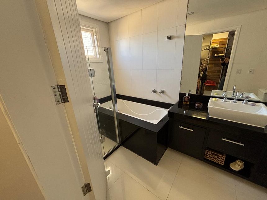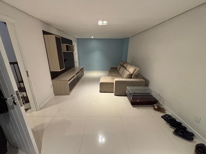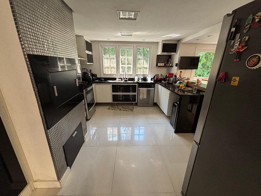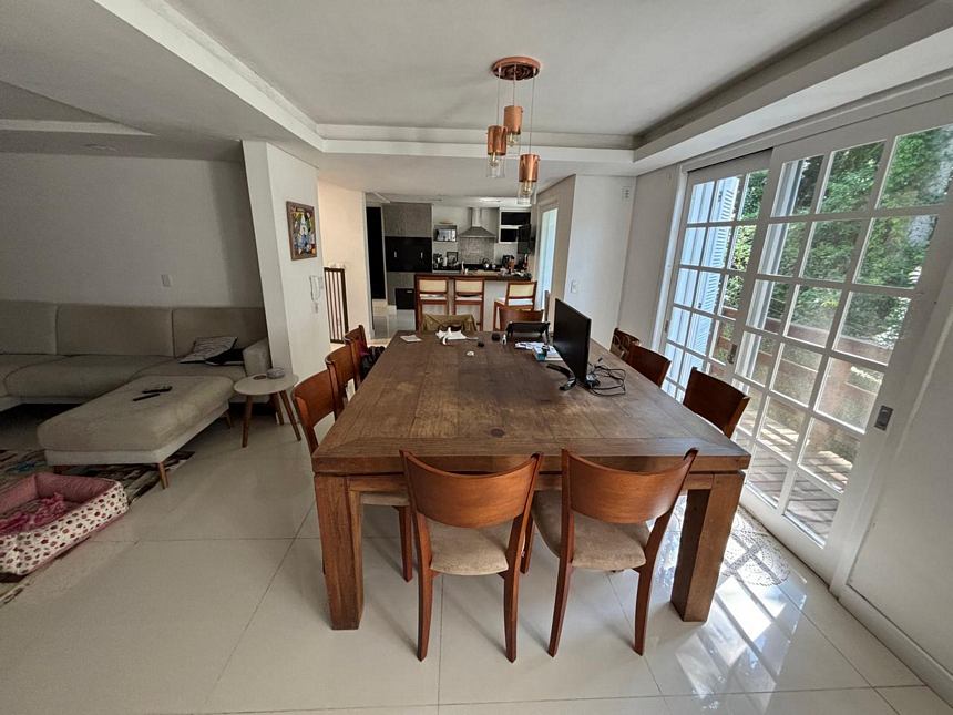 Registre-se abaixo para garantir este benefícioExcelente casa em condomínio pequeno com toda segurança, com 4 dormitórios sendo duas suítes, uma no térreo da casa Banheiro social, closet, sacada, amplo living três ambientes, cozinha americana montada com uma ampla mesa colonial, churrasqueira, lavanderia, pequeno pátio e garagem para 4 carros. Móveis fixos na casa vão ficar. Condomínio. Com salão de festas com churrasqueira, piscina, muito segura!