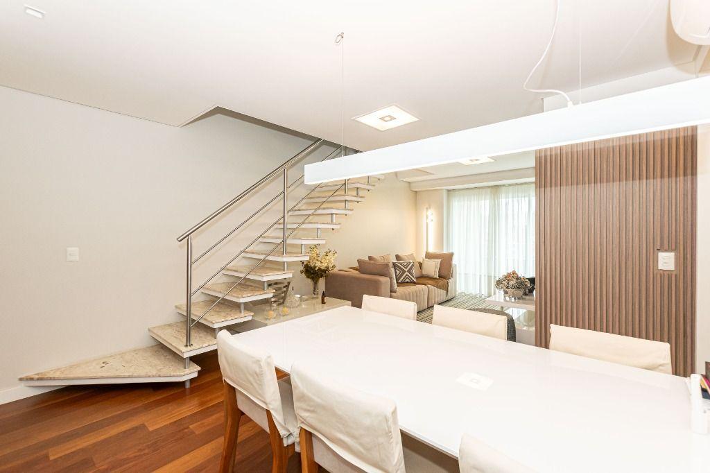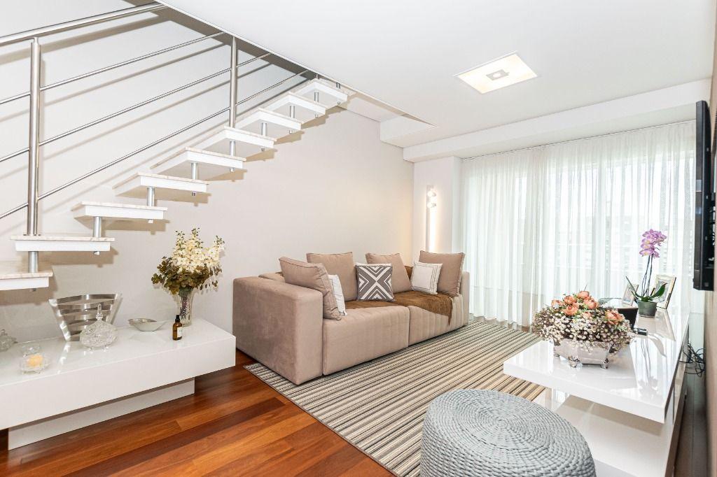 Registre-se abaixo para garantir este benefícioCobertura Duplex - Ahú - Juvevê. Sossego, vista panorâmica e excelente posição solar. Aqui você encontra tudo isso reunido em um imóvel de qualidade indiscutível. No piso inferior, ambientes amplos e bem distribuídos: sala espaçosa para vários ambientes, lavabo decorado, cozinha confortável com móveis planejados e excelente aproveitamento de espaço. Quartos bem definidos, sendo a suíte com amplo closet. Ambientes climatizados com ar-condicionado e iluminação natural abundante. No piso superior, um verdadeiro espaço de convivência: área gourmet completa, churrasqueira, adega e muito espaço para receber amigos e familiares com conforto e privacidade. Elevador atendendo os dois pavimentos, trazendo praticidade e exclusividade ao dia a dia. São três vagas de garagem. Localização privilegiada, próximo a supermercado, restaurantes, feira livre e ao icônico Museu do Olho, no bairro mais desejado da cidade. Importante: a planta original contempla 03 quartos, sendo uma suíte. Atualmente, o imóvel está configurado com 02 quartos, também sendo uma suíte, priorizando maior amplitude e integração dos ambientes. É totalmente possível reverter para a planta original de 03 dormitórios, caso desejado. Se você busca espaço, conforto, vista e localização estratégica, essa cobertura é a escolha certa. COD. CE